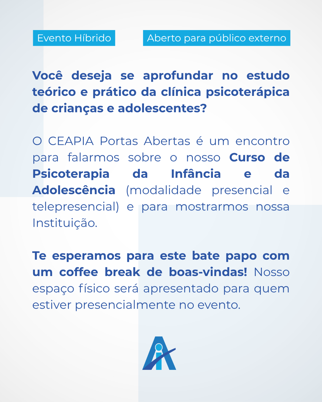 #CEAPIA #PsicoterapiaInfânciaEAdolescência #FormaçãoEmPsicoterapia #PortasAbertas