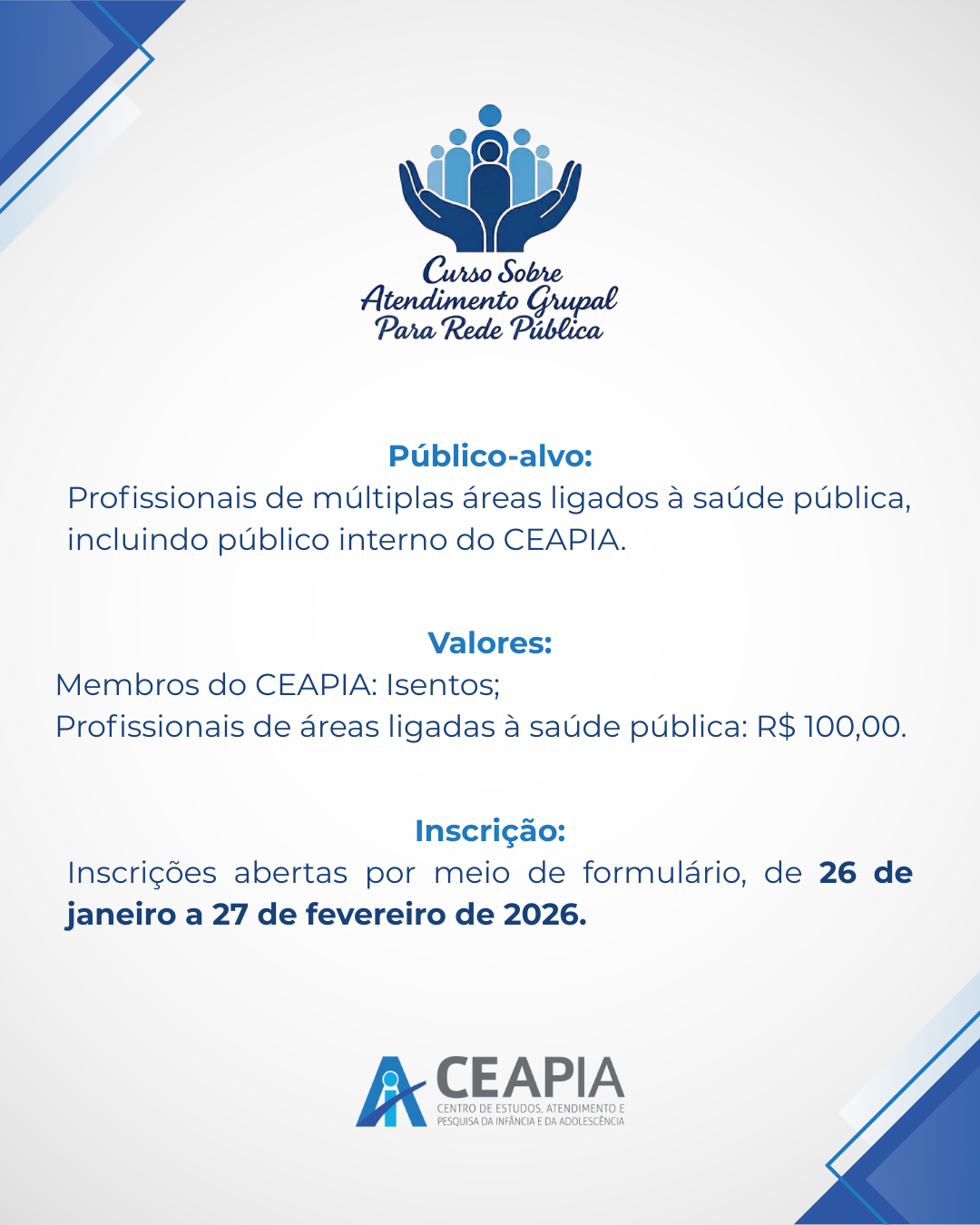 👥 Público: Profissionais de áreas ligadas à saúde pública e membros do CEAPIA