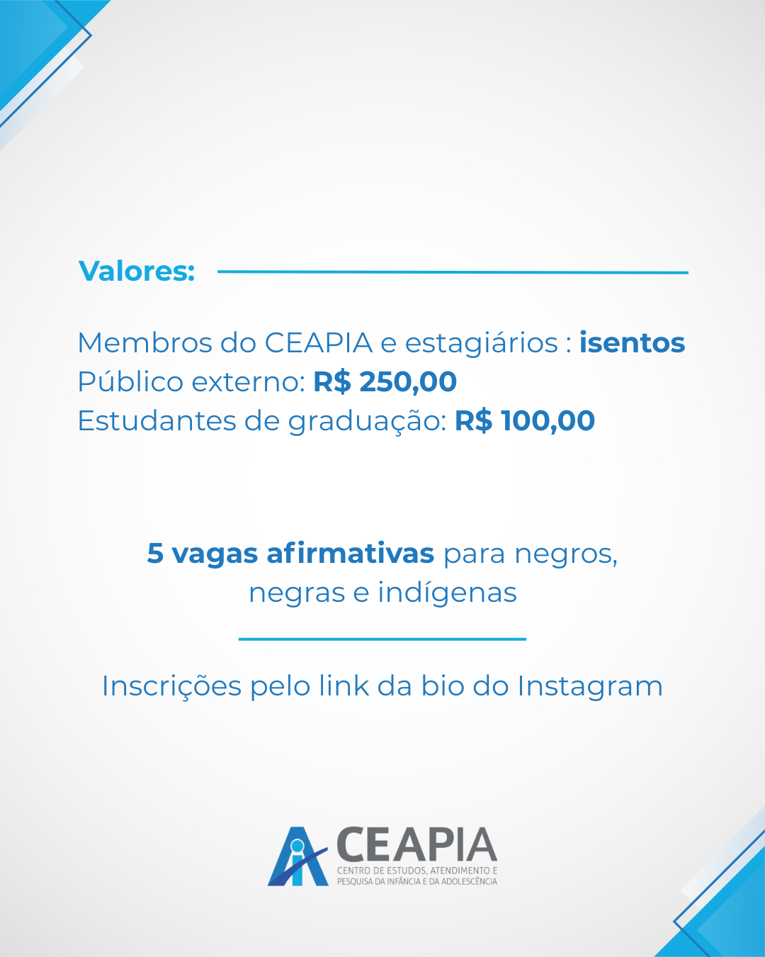 Inscrições e informações no link: https://docs.google.com/forms/d/e/1FAIpQLSdapjagQOzKWVrbw67WxGH8pOBmtoIcM2c5_d-w-dwb7Ss0hA/viewform