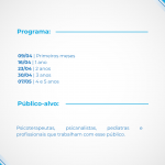 Público-alvo: psicoterapeutas, psicanalistas, pediatras e profissionais que trabalham com bebês, crianças pequenas e suas famílias.