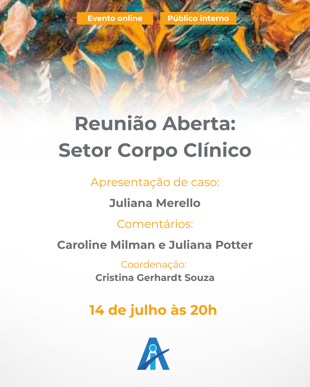 No dia 14 de julho, às 20h, acontece mais uma Reunião Clínica Aberta do Corpo Clínico do CEAPIA. Uma atividade de troca e reflexão sobre a prática clínica, que integra o percurso de formação contínua dos profissionais da instituição.