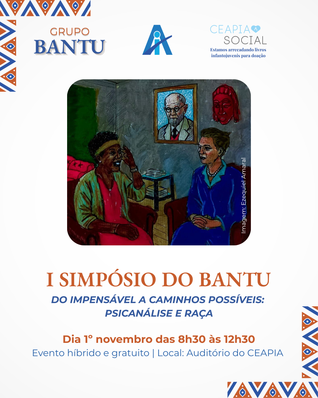 No dia 1º de novembro, o CEAPIA realiza o I Simpósio Bantu, um encontro que propõe pensar a psicanálise a partir das questões raciais — do que antes era impensável aos caminhos que hoje se abrem para novas escutas e práticas.